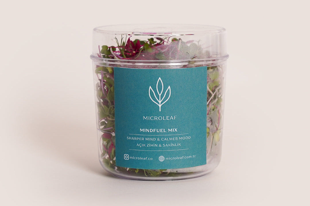 Mindfuel Mix, beynin ihtiyaç duyduğu oksijen ve besin desteğini sağlar. Brokoli mikroyeşilliğinden gelen sülforafan, sinir hücrelerini korur ve beynin kendi gelişim hormonu sayılabilecek BDNF’yi (Beyin-türevli nörotrofik faktör) artırır. BDNF’yi, beynin gübresi gibi düşünebilirsin: yeni bağlantılar kurmayı, hafızayı güçlendirmeyi ve zihinsel netliği kolaylaştırır. Karabuğdayın sunduğu rutin, beyin dolaşımını ve damar esnekliğini artırır. Kırmızı lahanadan gelen C vitamini ve antosiyaninler hafızayı desteklerken antioksidan koruma sağlar. Az miktardaki kırmızı amarant demir ve nitrat katkısı verir, bezelye filizleri ise folat ve hafif protein desteğiyle karışımı dengeler.